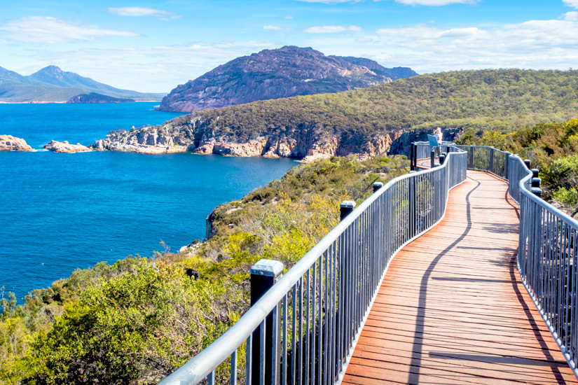 Wir lieben den Freycinet National Park nicht nur wegen seiner charakteristischen, rosafarbenen Granitberge – sondern auch wegen der herrlichen Sandstrände und abgelegenen Buchten. Hier könnt ihr in natürlicher Umgebung spazieren gehen oder die bunte Vogelwelt beobachten. In den Buchten ist Schwimmen, eine Fahrt mit dem Kajak oder eine Schnorcheltour angesagt.