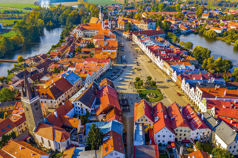 Der erste Weg bringt euch mit dem Zug nach Brünn oder mit dem Flugzeug nach Prag. In der nächsten Etappe fahrt ihr rund anderthalb Stunden von Brünn oder zwei Stunden von Prag mit dem Mietwagen ans Ziel. Alternativ steigt ihr auf die öffentlichen Verkehrsmittel wie Bus und Bahn um, um Telč zu erreichen – von Prag dauert dies deutlich länger. Einmal angekommen, könnt ihr auch das Auto stehen lassen und die Stadt zu Fuß erkunden.