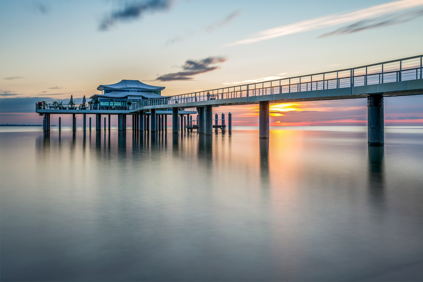 Im Ortsteil Niendorf befindet sich die Fischkopf-Seebrücke, benannt aufgrund ihrer eigenwilligen Form, wenn man sie von oben betrachtet. Dorthin solltet ihr gehen, wenn ihr einmal direkt von der Brücke aus über einen hydraulischen Badesteg ins Wasser springen möchtet. Die dritte Seebrücke am Maritim soll Mitte 2022 fertiggestellt sein.