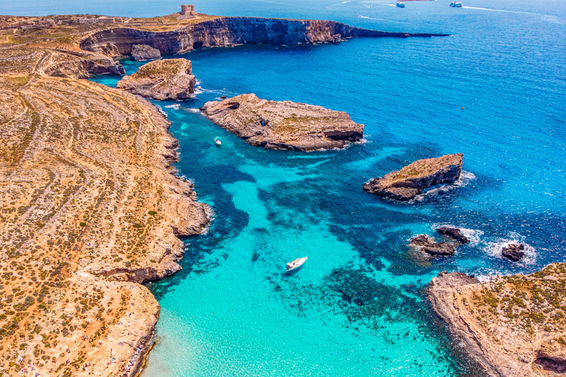 Ebenfalls im Mittelmeer und mindestens genauso schön ist Malta. Das Archipel zählt drei Inseln, mehr als 300 Sonnentage pro Jahr und rund 5.600 Jahre Geschichte, erzählt von den dutzenden Ruinen der steinzeitlichen Tempel. Die Blauen Lagune von Malta lädt zum Baden ein, während das Partyleben in Paceville vor allem junge Besucher aus der ganzen Welt anlockt. Demgegenüber leben auf der Insel Comino offiziell nur drei Menschen. Wer also nach Ruhe sucht, wird dort fündig.