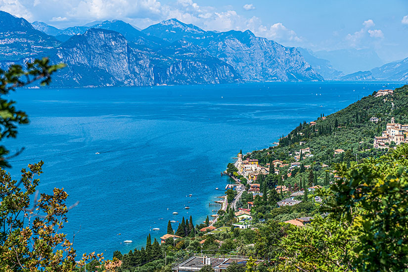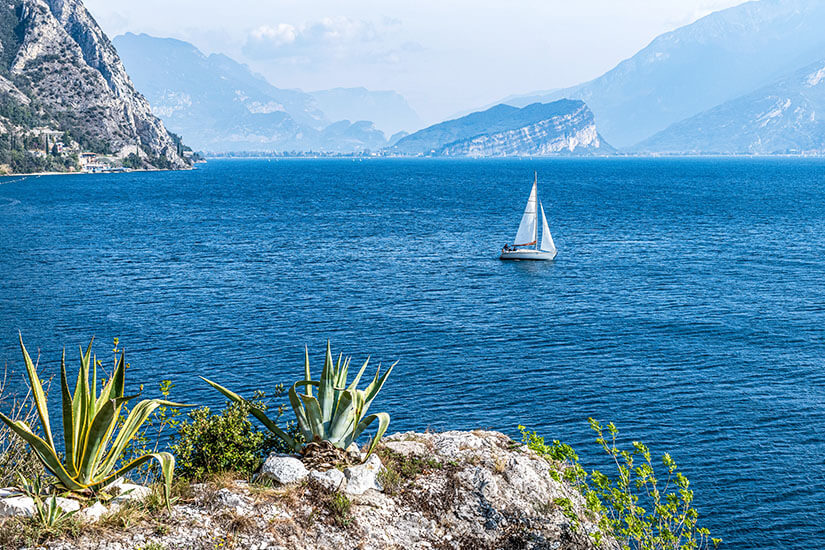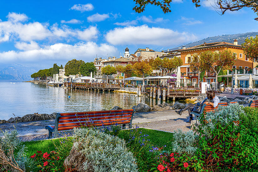 Rund um den Hafen reihen sich gemütliche Cafés und Restaurants, die zum Verweilen einladen. Von hier aus habt ihr einen wunderbaren Blick auf das gegenüberliegende Ufer des Gardasees und könnt bei einem Glas lokalen Weins das bunte Treiben beobachten. Sehenswert ist die Piazza Chiesa mit der Pfarrkirche San Giovanni Battista aus dem 18. Jahrhundert. Ihr Inneres beherbergt wertvolle Kunstschätze und Fresken. Nehmt euch Zeit, um in aller Ruhe durch die Straßen zu schlendern und in kleinen Geschäften nach typischen Souvenirs aus Italien zu stöbern.