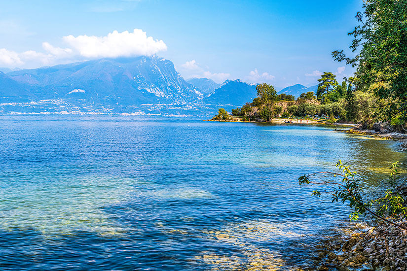 Was die Baia delle Sirene auszeichnet, ist, dass sie vor starken Winden geschützt liegt und kaum Bootsverkehr herrscht. Zahlreiche kleine Fische tummeln sich zwischen den Steinen im Wasser – bringt unbedingt eure Taucherbrille mit! Ein weiteres Highlight ist der Panoramaweg, der am oberen Rand der Bucht entlangführt und spektakuläre Aussichtspunkte bietet. Von hier aus könnt ihr atemberaubende Fotos machen und den Blick über den gesamten südlichen Gardasee schweifen lassen.