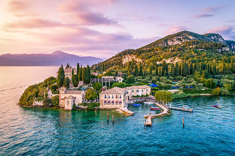 Etwa acht Kilometer südlich von Torri del Benaco erstreckt sich eine kleine Landzunge in den Gardasee, die zu den romantischsten Orten der gesamten Region zählt: Punta San Vigilio. Diese verzauberte Halbinsel mit ihrem verwunschenen Park, der kleinen Bucht und dem historischen Gebäudeensemble gilt als Inbegriff italienischer Schönheit und war schon immer ein Magnet für Künstler, Dichter und gekrönte Häupter.