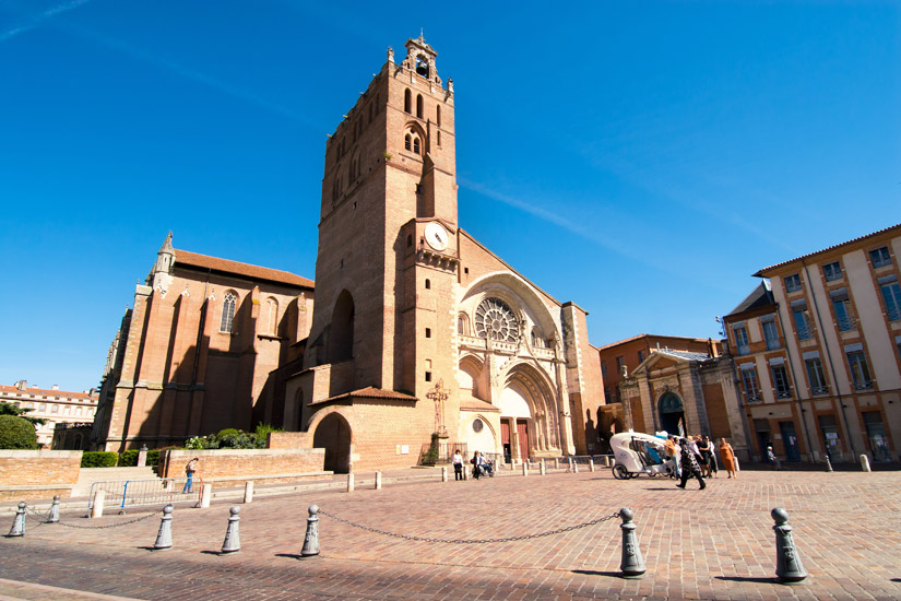 Nicht weit entfernt vom Kapitol befindet sich die Basilika Saint-Sernin, das Wahrzeichen der Stadt. Diese größte noch erhaltene romanische Kirche Frankreichs wurde im zwölften Jahrhundert vollendet und ist seit 1998 UNESCO-Weltkulturerbe. Besonders eindrucksvoll ist ihr achteckiger Glockenturm, der aus der Kirche herausragt und dem imposanten Gebäude eine zusätzliche Erhabenheit verleiht. Die Basilika, die einer der bedeutendsten Wallfahrtsorte des Jakobswegs im Mittelalter war, könnt ihr kostenlos betreten. Manchmal finden dort auch Konzerte statt.