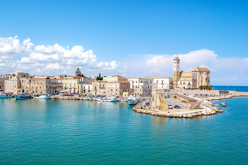 Nur zehn Kilometer entfernt befindet sich der Ort Bisceglie, der genauso viel italienischen Charme versprüht wie Trani. Dort könnt ihr euch die pittoreske Altstadt und die edlen Adelspaläste Frisari und Tupputi anschauen. Zu den Sehenswürdigkeiten zählen der Normannische Turm und die Überreste der Angevinischen Burg. Abgerundet wird der Ausflug nach Bisceglie mit einem Spaziergang am Hafen, an dem ihr das maritime Flair spürt.