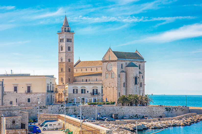 Der Name dieses magischen Gebäudes bezieht sich auf den Pilger Sankt Nikolaus. Die Kurzform ist Kathedrale von Trani. Diese Bischofskirche ist eine Doppelkirche mit einer Krypta. Die Oberkirche ist dem Heiligen Nikolaus geweiht. Zudem gibt es die Hallenkrypta und die Unterkirche Santa Maria della Scala. Das beeindruckende Gotteshaus hat ein zauberhaftes Ambiente und steht vor imposanter Kulisse unmittelbar am Meer.