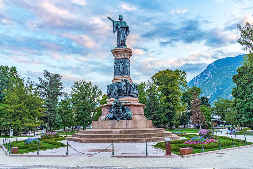 Das Dante-Denkmal, das Dante Alighieri gedenkt, wurde im 19. Jahrhundert erbaut. Es dient als Symbol der italienischen Kultur in der Region des Trentinos und reicht knapp 18 Meter in die Höhe. Das aus Bronze und Granit bestehende Denkmal ist Teil des Parks Giardini Pubblici, einer kleinen grünen Oase nahe des Trienter Bahnhofs. Dort kann ein wenig Energie für die weitere Erkundungstour gesammelt werden.