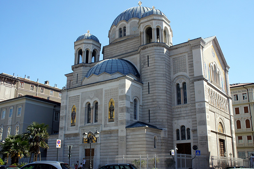 Darunter befinden sich einige bekannte Sehenswürdigkeiten der Stadt, wie die Statue und das ehemalige Wohnhaus des Autors James Joyce, der in Triest lebte und an der Universität unterrichtete. Auch die serbisch-orthodoxe Kirche der Dreifaltigkeit und des Heiligen Spyridon ziert das Ufer des Kanals und lockt mit einem Blick in das Innere. Besonders ins Auge fallen wird euch jedoch das Palazzo Aedes, ein Art-Deco-Gebäude. Der rote Backsteinbau soll an die New Yorker Häuser aus den 20ern erinnern.