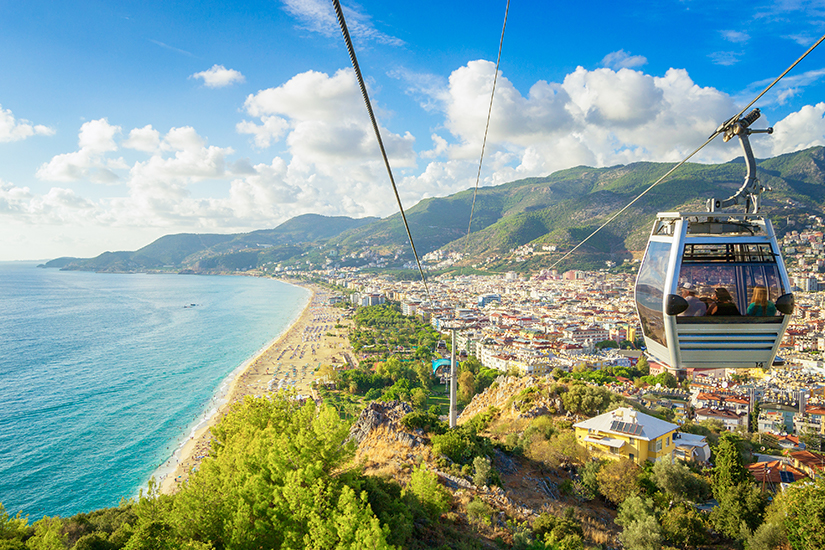 Wenn ihr nicht den ganzen Tag am idyllischen Kleopatra Strand entspannen möchtet, locken in Alanya zahlreiche historische Sehenswürdigkeiten, bei denen ihr euch auf eine spannende Zeitreise in die Geschichte begeben könnt. Bei der Burg von Alanya handelt es sich um die besterhaltendste Festung der gesamten Türkei. Die 6,5 Kilometer lange Verteidigungsanlage mit ihren 140 Türmen wurde im 13. Jahrhundert von den Seldschuken erbaut und diente als Schutz des Hafens. Durch ihr Ausmaß ähnelt sie jedoch viel eher einer kleinen Stadt mit Marktplatz, Häusern und Zisternen. Eine Seilbahn bringt euch nach oben.