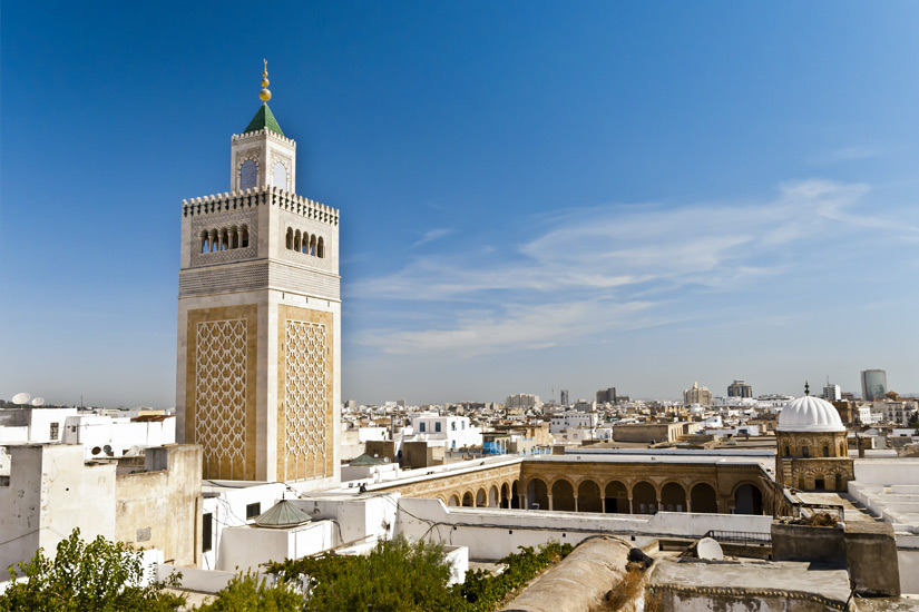 Die Djamaa ez Zitouna Moschee mitten im Herzen der Medina ist auch als die Große Moschee bekannt und wurde Ende des 9. Jahrhunderts von den Aghlabiden erbaut. Sie gilt als eines der wichtigsten Gotteshäuser des Landes und beherbergt einen Gebetssaal, der aus 15 Schiffen besteht. Außerdem finden im Inneren der Moschee verschiedene Fakultäten der Universität Platz, denn die Moschee wurde zwischen dem 13. und 15. Jahrhundert in einen Hochschulkomplex verwandelt. So ist sie als eine der größten islamischen Bildungsstätten bekannt.