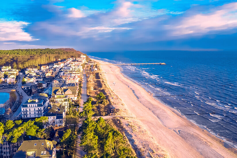 Das Ostseebad Heringsdorf zählt nicht ohne Grund zu den zehn schönsten Stränden von ganz Deutschland. Das Adelshaus der Hohenzollern verwandelte das kleine Fischerdorf im 19. Jahrhundert in ein Touristenzentrum. Heute ist Heringsdorf das wohl bekannteste Reiseziel auf der Insel Usedom. Das Seebad ist ebenfalls Teil der Kaiserbäder und berühmt für seine Strandpromenade, die gesäumt ist von wilhelminischen Villen zwischen weitläufigen Parkanlagen. Die Gründerzeitvilla „Villa Zabel“ ist dabei nur eines der vielen Highlights, welche euch Heringsdorf bietet: Besichtigt die längste Seebrücke von Kontinentaleuropa, besucht das Museum für Literatur- und Regionalgeschichte oder lasst euch von der Sternwarte in ein anderes Universum entführen.