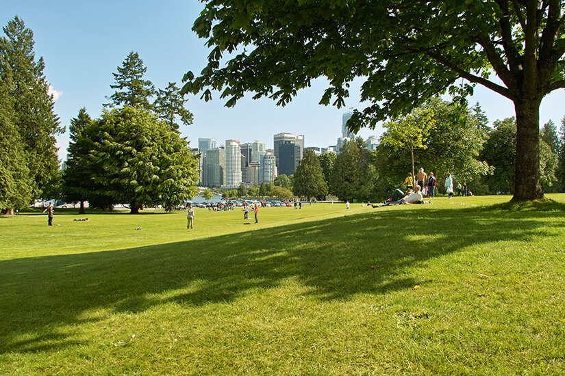 Der Stanley Park ist ein Stadtpark, der nicht nur der größte von Kanada ist, sondern auch mit seiner einzigartigen Lage beeindruckt – er ragt nämlich mitten in den Fjord Burrard Inlet hinein. Im Park erwartet euch ein Netz aus insgesamt 200 Kilometer langen Wegen, die ihr über ausgiebige Spaziergänge oder Fahrradtouren erkunden könnt. Dabei könnt ihr am Wasser entlang gehen oder etwas tiefer in die Mitte des Parks vordringen. Etwa eine halbe Millionen Bäume machen den Stanley Park zu einer grünen Naturoase mitten in der Großstadt. Mit etwas Glück könnt ihr hier sogar wilde Tiere wie Hasen, Waschbären oder Kojoten in ihrem natürlichen Umfeld beobachten.