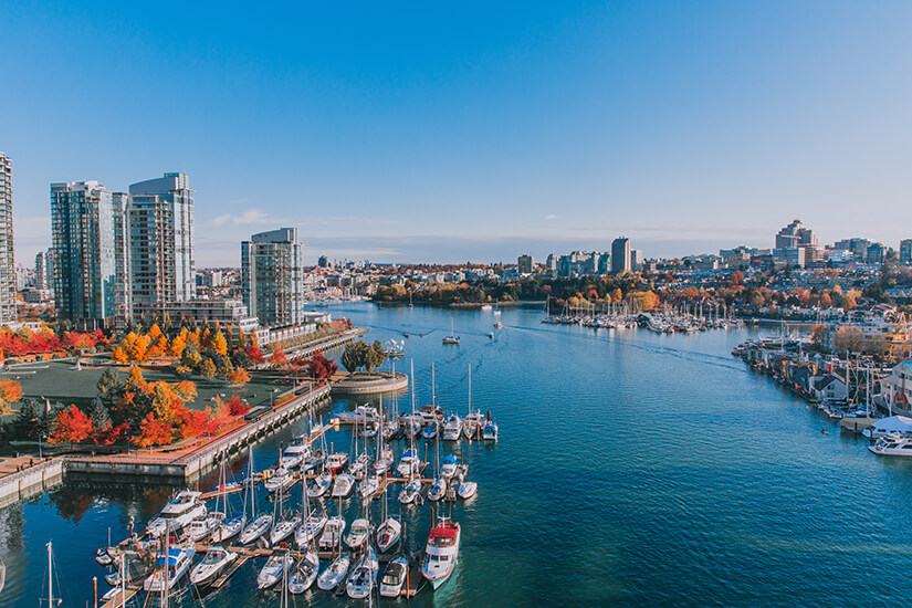 Durch den warmen Kuroshio-Strom herrscht in Vancouver ein gemäßigtes und angenehmes Klima. Die Wintermonate sind zwar feucht, doch mit durchschnittlich acht bis zehn Grad Celsius nicht besonders kalt. In den Bergen ist es jedoch kälter und es schneit stark. Der Sommer bringt euch Temperaturen bis zu 25 Grad Celsius und es regnet selten. So solltet ihr Vancouver von Mai bis September besuchen, um das schönste Wetter zu genießen. Im Mai habt ihr außerdem die beste Chance, Bären in freier Wildbahn zu beobachten. Der Herbst bietet bis in den November hinein hingegen den Blick auf die traumhaften Herbstfarben der kanadischen Natur.