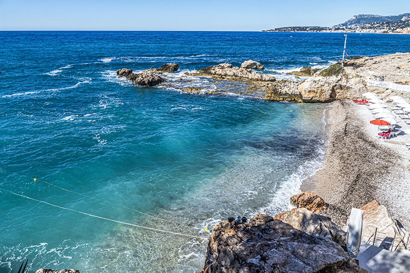 Direkt neben dem Strand befinden sich die prähistorischen Grotten von Balzi Rossi. Die Umgebung eignet sich auch hervorragend zum Schnorcheln – das Meer ist kristallklar und die Felsformationen bieten eine spannende Unterwasserwelt. Nach diesen ganzen Aktivitäten könnt ihr in dem direkt am Strand gelegenen Restaurant schlemmen.