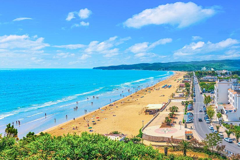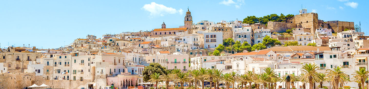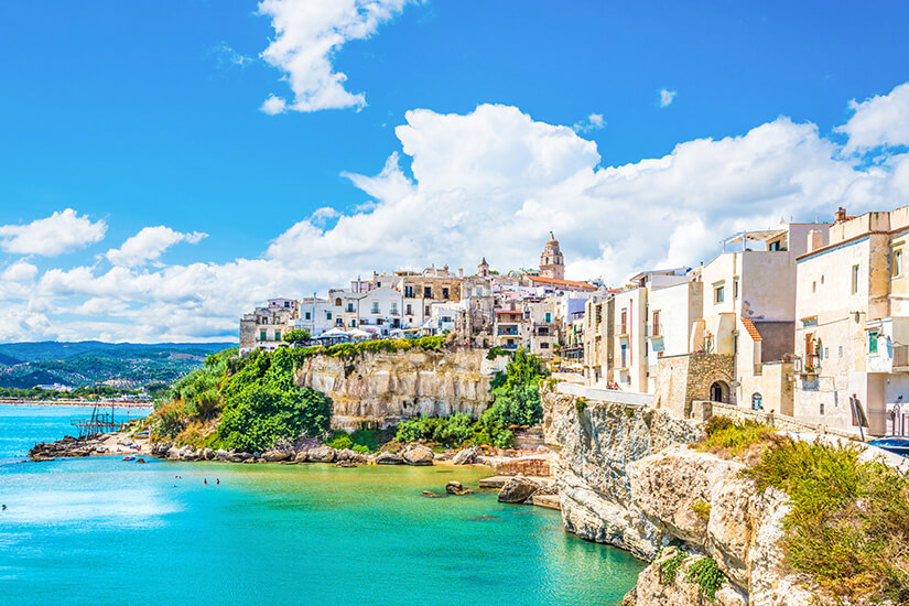 Vieste liegt am östlichen Rand des Nationalparks Gargano und ist etwas abgelegener als andere Orte entlang der adriatischen Küste. Damit besitzt die Stadt einen ganz eigenen Charme. Die nächstgelegenen Flughäfen befinden sich in Bari und Pescara. Von dort aus könnt ihr mit dem Mietwagen, dem Bus oder dem Zug in Richtung Foggia weiterreisen und dann mit einem regionalen Shuttle-Service oder Auto nach Vieste gelangen. Bevorzugt ihr eine landschaftlich besonders reizvolle Anreise, dann fahrt die kurvenreiche Küstenstraße mit ihren spektakulären Ausblicken entlang.