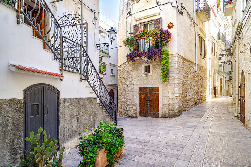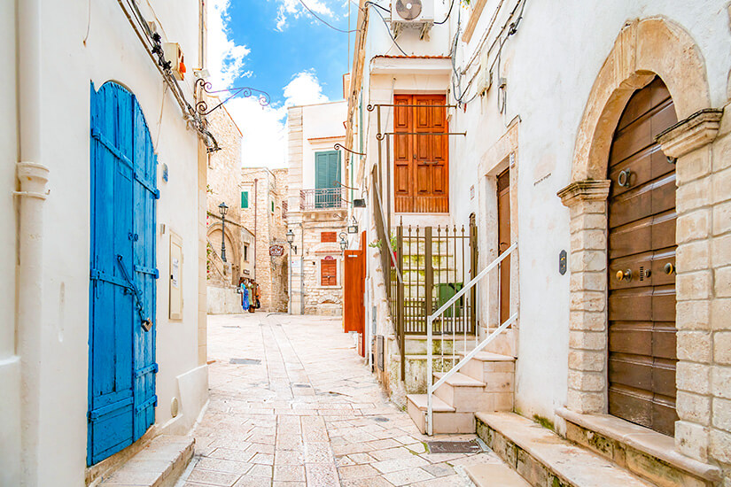 Ein Spaziergang durch den ältesten Teil von Vieste bietet mehr als nur Sightseeing: Es ist ein Erlebnis für die Sinne. Schlendert durch enge Gassen, bewundert dabei weiß getünchte Häuser mit bunten Fensterläden und genießt den Duft von frisch gebackenem Brot und Espresso. Immer wieder eröffnen sich euch traumhafte Blicke auf das Meer, besonders vom Aussichtspunkt Belvedere Ripa.