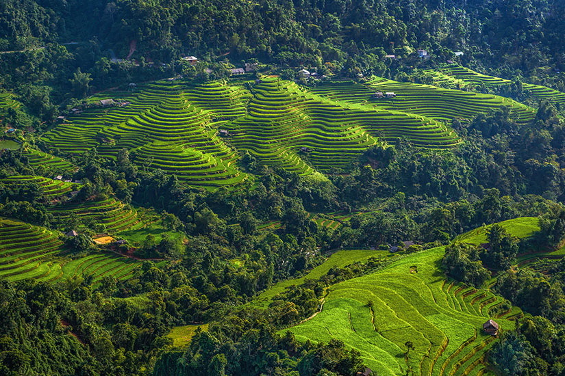 Im Nordwesten von Vietnam liegt diese ländliche Region Mu Chang Chai, die mit ihren pittoresken Reisterrassen bezaubert. Die üppige Vegetation und die tiefgrünen Farben sind ein Augenschmaus. Ob geschwungene Terrassen an sanften Hügeln oder mosaikartige Felder in den Ebenen: Seit dem Jahr 2007 zählt die Gegend übrigens zum nationalen Kulturerbe, kein Wunder bei diesem unvergesslichen Anblick. Wer möchte, kann viel über den Reisanbau und die Region lernen.