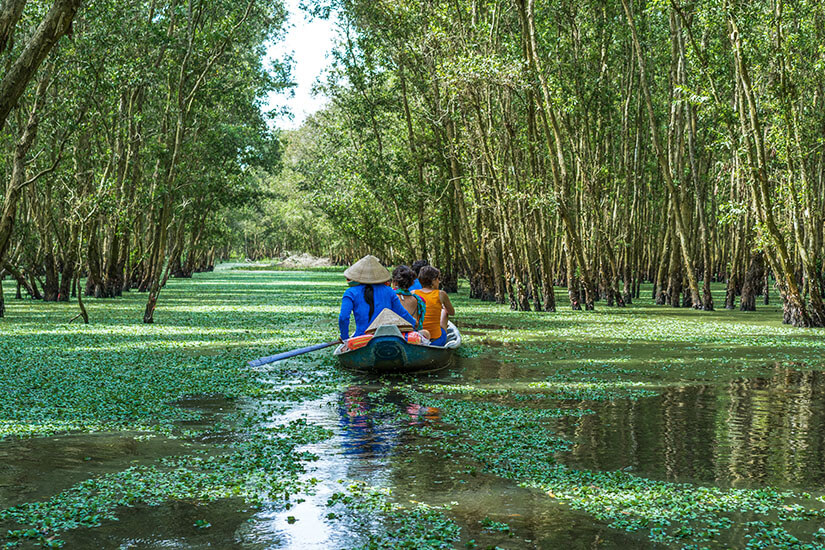 Die Region Mekong Delta liegt im Südwesten Vietnams und ist, wie der Name bereits verrät, vor allem von dem großen Fluss geprägt. Durch das Flussdelta entsteht ein besonders fruchtbarer Boden, weshalb ihr hier neben Reis- auch vielen Obstplantagen begegnen werdet. Die größte Stadt der Region heißt Cần Thơ, die für ihre schwimmenden Märkte bekannt ist. An den kleinen Händlerbooten entdeckt ihr sicherlich auch das eine oder andere, das sich als Souvenir aus Vietnam eignet. Startet am besten bei dem Markt nahe Cai Rang.
