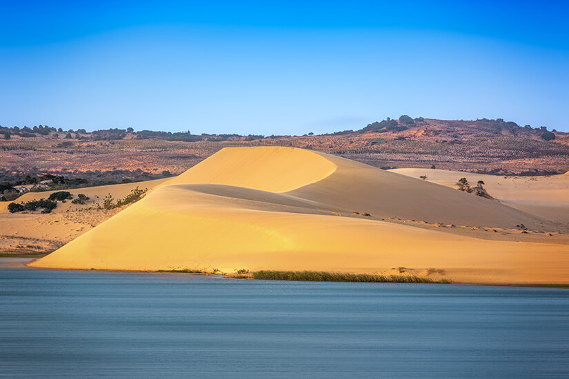 Wenn ihr paradiesische Sandstrände mögt, werdet ihr diesen Ort im Süden Vietnams lieben. Rund 20 Kilometer von Phan Thiết, der Hauptstadt der Provinz Binh Thuan entfernt, liegt Mũi Né. Neben perfekten Windverhältnissen für Surfer überzeugt die Stadt mit ihren traumhaften weißen und roten Sanddünen. Durch die starken Winde der Region geformt, bilden sie heute das Tor zur Stadt. Erkunden könnt ihr die Dünen auf eigene Faust oder im Rahmen einer geführten Tour. Besonders actionreich wird es bei einer Quadfahrt und spaßig bei der beliebten Sportart Sandboarding.