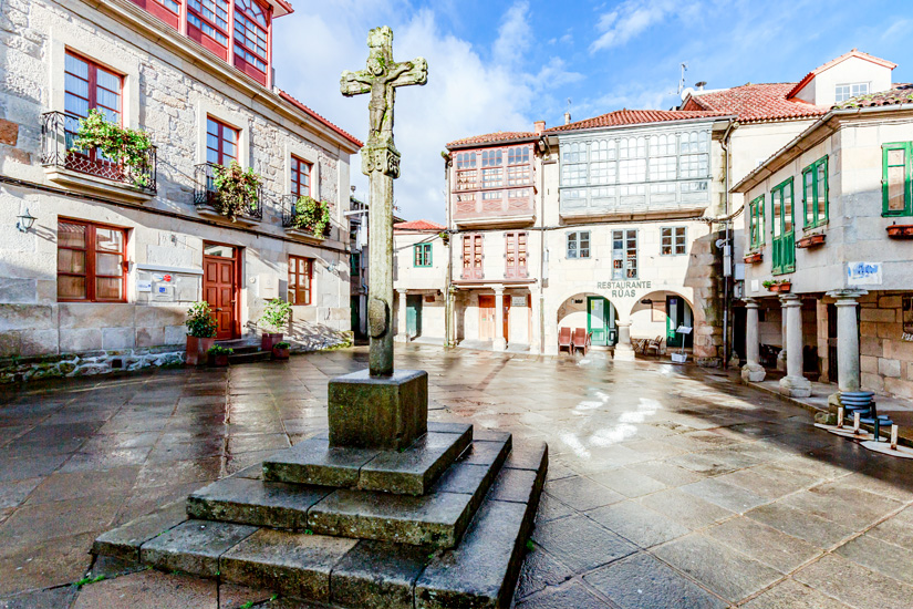Im Norden des Platzes sind die bekannten Türme der Konkathedrale Santa María zu sehen, die auch als A Colegiata bezeichnet wird. Die neoklassizistische Kirche aus dem Jahr 1811 ist definitiv einen Besuch wert. Sie nimmt den Platz einer früheren gotischen Kirche ein, die von dem notorischen Freibeuter Sir Francis Drake in Brand gesteckt wurde.
