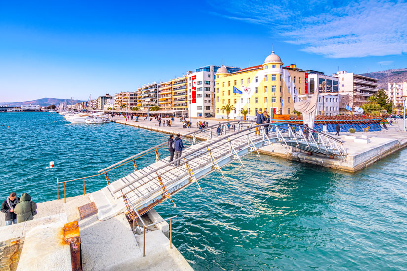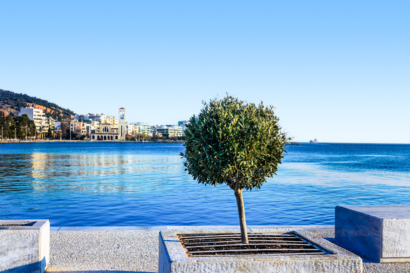 Am Ende der Promenade – da, wo sie einen kleinen Knick macht – geht ein über 500 Meter langer Wellenbrecher aufs Wasser hinaus, der euch besonders abends einen hervorragenden Blick auf die sanft beleuchtete Stadt ermöglicht. An dem Startpunkt des Damms steht auch das Argo-Denkmal, das in gewisser Weise das Wahrzeichen der Stadt ist. Ein kleines Stück weiter könnt ihr dann im Stadtpark Agios Konstantinos grüne Natur und Meeresbrise miteinander vereinen.
