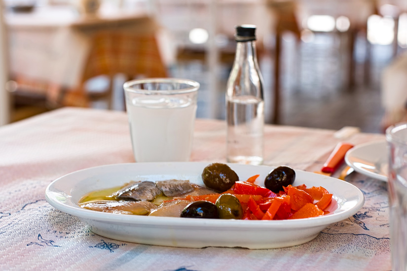 Das Besondere daran ist, dass es zu jedem Schnaps, den ihr bestellt, eine kleine Speise gibt. Diese bestehen meist aus Meeresfrüchten und sind bei jeder Bestellung sowie in jedem Tsipouradiko unterschiedlich und individuell. Wem der Schnaps und diese Tradition zusagt, kann sich durch die ganze Stadt durchprobieren.