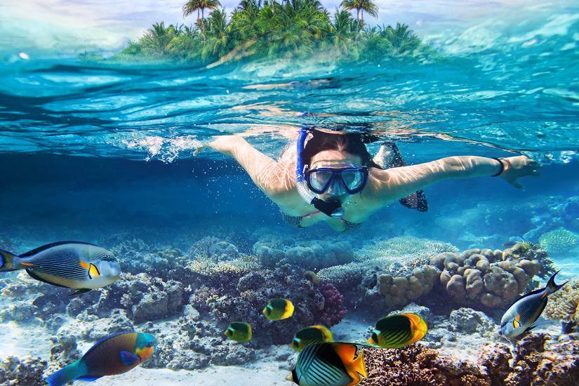 Die Seychellen sind nicht nur bei Kennern ein echtes Schnorchelparadies, das Einblicke in die Welt von Schildkröten, exotisch bunten Fischen, Muränen und Mantarochen bietet. Auch die imposanten Walhaie sind in den Gewässern häufig einmal anzutreffen.