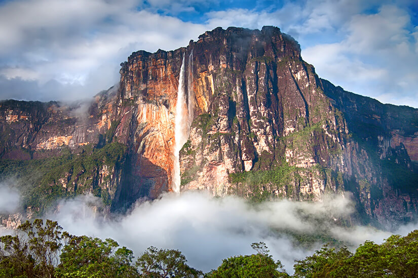 Er ist der höchste Wasserfall der Welt und befindet sich mitten im venezolanischen Urwald – der Salto Àngel. Trotz seiner gigantischen Größe blieb er lange Zeit unentdeckt, da er im tiefen und entlegenen Dschungel situiert ist. Dabei ist er mit seiner Fallhöhe von 979 Metern der weltweit höchste unter den Wasserfällen. Möchtet ihr euch auf die Suche nach dem Giganten machen, so solltet ihr den Nationalpark Canaima im Südosten Venezuelas ansteuern. Dieser Nationalpark, der Teil des UNESCO Weltkultur- und Naturerbes ist, liegt in der über 10.000 Quadratmeter großen Hochfläche Gran Sabana, im tropischen Bundesstaat Bolívar.
