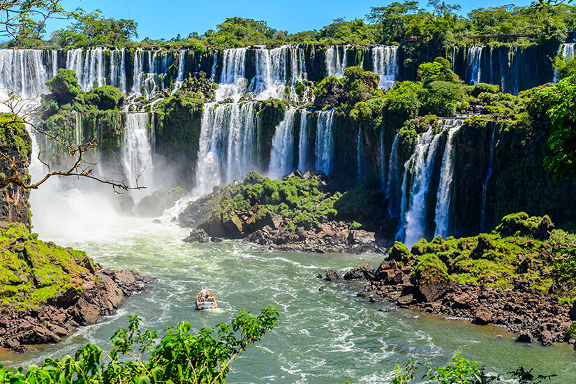 Die verschiedenen Wasserfälle der Iguazú Falls werden durch kleine Inseln voneinander getrennt, wobei sich die meisten davon im argentinischen Gebiet befinden. So ist der Anblick von der brasilianischen Seite etwas spektakulärer, wobei ihr auf der argentinischen Seite jedoch auf einem Aussichtspfad entlangspazieren könnt. Doch auch die 255 kleineren Wasserfälle sind es wert, besichtigt zu werden. Diese könnt ihr auf ausgeschilderten Wanderwegen entdecken. Dabei solltet ihr einen Ausflug zur Insel San Martin unternehmen, denn dort lockt ein Bad inklusive Dusche in einem der kleineren Wasserfälle. Ihr wollt die Iguazú Falls aus nächster Nähe erleben? So könnt ihr eine Bootstour buchen, die jedoch zu einem nassen Vergnügen wird.