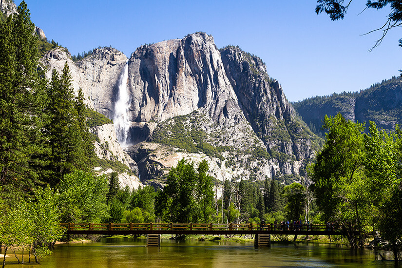 Die Yosemite Falls gelten mit ihrer Höhe von 739 Metern als höchste Wasserfälle Nordamerikas. Mitten im kalifornischen Yosemite-Nationalpark sind sie bei einer abwechslungsreichen USA-Reise durch ihre gute Infrastruktur recht einfach zu erreichen. Allerdings solltet ihr die Yosemite Falls nicht im Hochsommer besuchen, da das Naturspektakel aufgrund der Trockenheit in dieser Zeit eher nüchtern ausfällt. Da der Mai als regenreichster Monat in dieser Region gilt, lohnt sich der Besuch zu dieser Zeit. Besonders naturnah erlebt ihr das Spektakel, wenn ihr eine Wanderung entlang der oberen Kante der Wasserfälle unternehmt.