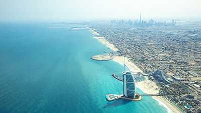Wüste, Dromedare, Strand, Meer, Luxus, Shopping, Wolkenkratzer der Superlative und Gold wohin das Auge reicht – das ist Urlaub in Dubai! Das zweitgrößte und bevölkerungsreichste Emirat der VAE (Vereinigte Arabische Emirate) ist vor allem wegen seiner Extravaganz, westlichen Orientierung und hippen Architektur bei westlichen Touristen beliebt. Die Skyline der gleichnamigen Stadt wird durch den 830 Meter hohen Burj Khalifa dominiert und ist wohl somit das Wahrzeichen der Metropole. Mit dem Fahrstuhl hinauf in luftige Höhen, erwartet euch eine 360 Grad Aussichtsplattform mit einem furiosen Blick auf die Straßen der Stadt, den Persischen Golf und auf die Arabische Wüste, bei viel Glück und guter Sicht sogar bis zum Hadschar-Gebirge. Keinesfalls solltet ihr diese atemberaubenden Sehenswürdigkeiten verpassen: den Burj Al Arab, die künstlich angelegte The Palm Jumeirah, den Dubai Miracle Garden und die Einkaufszentren Dubai Mall und Mall of the Emirates, in denen ihr aus dem Staunen und dem Kaufrausch nicht mehr herauskommen werdet! Sommer, Sonne, Sonnenschein erhaltet ihr hier, bei 25 Grad in der Luft und fast schon frischen 21 Grad im Wasser, gratis!