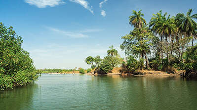 Gambia? Das liegt im Westen von Afrika. Und dort kann man Urlaub machen? Ja! Das kleine Land im Westen des schwarzen Kontinents galt bislang als Afrikas stille Schönheit und Geheimtipp unter Afrikaurlaubern, entpuppt sich jedoch immer mehr als Ziel für eine Auszeit abseits der Touristenströme. Das Land wird komplett vom Senegal umschlossen und besitzt nur eine kleine Küste zum Atlantik, an der auch die Hauptstadt Banjul liegt. Landschaftlich bestimmt der gleichnamige Fluss Gambia mit seinen bewaldeten, fast schon urwaldlichen Ufern und die dahinter liegende Savanne das Bild des Landes. Strandurlaub bei 32 Grad Luft- und 21 Grad Atlantiktemperatur ist nicht alles: Unternehmt im Gambia-Urlaub einen Ausflug in das Hinterland und begegnet dabei Krokodilen, Affen und schillernd bunten Vogelarten, um die volle Bandbreite des Landes während einer Reise einfließen zu lassen.