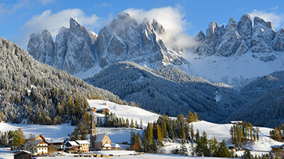 Die nördlichste italienische Provinz umfasst 39 Skigebiete und zeigt sich zumeist felsig-schroff. Vom Reschenpass über Skiwiese Innerpflersch, Klausberg-Ahrntal, Drei Zinnen Dolomiten und Alta Badia, bis hin nach Gröden oder zur Ortlergruppe: hier findet (fast) jeder das passende Winterferien Areal mit dem geeigneten Hotel für seinen Urlaub in Südtirol. Der bekannte Wintersportort Gröden auf 1.563 bis 2.500 Metern Höhe ist dabei das beliebteste Skigebiet und somit für viele Reisende ein Traumziel in den Dolomiten. Als Teil des Sella Ronda ist Gröden wegen seiner kurzen Wege sowie direktem Pistenzugang besonders beliebt und bietet zudem eine Anbindung an Dolomiti Superski, das weltweit größte Skikarussell. Neben dem traditionellen Skifahren, Snowboarden und Rodeln könnt ihr euch beim Eisklettern eine Extraportion Adrenalin holen, denn die vereisten Felswände hier liefern die beste Grundlage dafür. Auch eine Sprachbarriere braucht ihr in Südtirol nicht zu fürchten, denn ein hoher Bevölkerungsanteil Südtirols spricht historisch bedingt Deutsch.