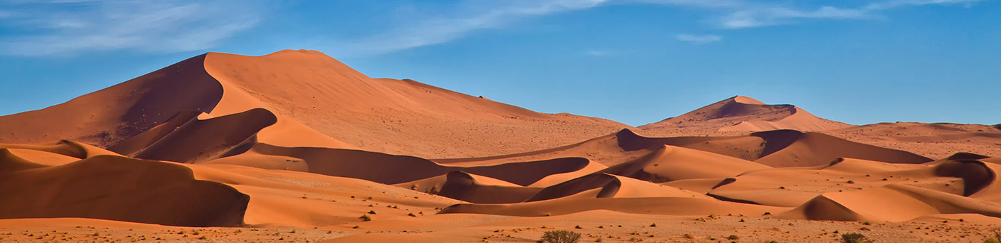 Ein kräftiger Wind trägt den feinen Sand hinfort und formt dadurch längliche Dünen-Wellen. Nur durch Pflanzenwuchs gehalten, gelten die Dünen als charakteristisch für die gesamte Wüste. Die Trockensavanne beherbergt Akazien, Dornensträucher, Gräser und eine artenreiche Tierwelt von Löwen über Springböcke bis hin zu Webervögeln. Einzigartig sind auch die Safaris, bei denen ihr ganz dicht an Flora und Fauna herankommt. Bei einem Urlaub in Namibia solltet ihr euch den Wüstenbesuch deshalb nicht entgehen lassen!