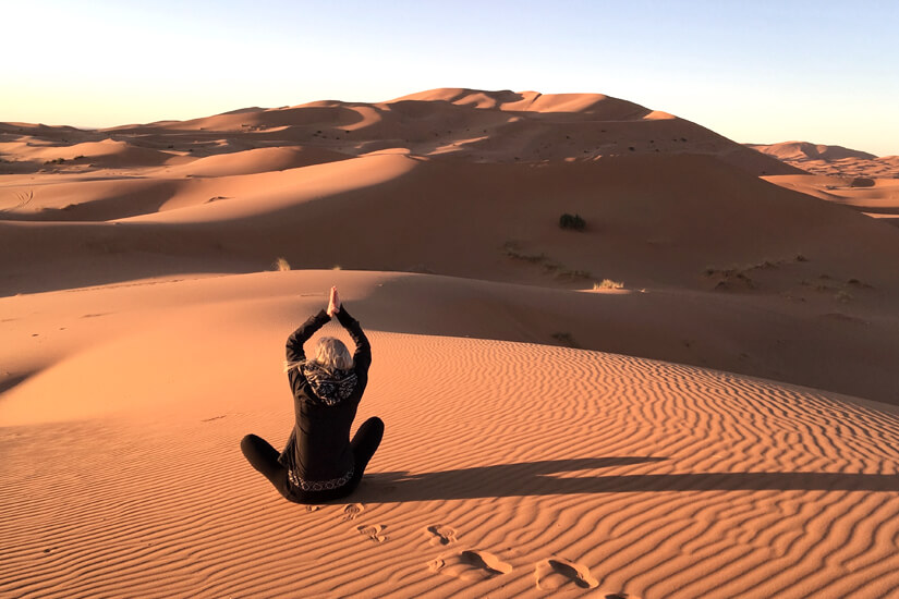Yoga in Marokko ist anders. Hier wandert ihr entlang mächtiger Dünen, bevor ihr euch in den heißen Sand niederlasst und mit Blick auf die weite Landschaft Yoga ausübt. Im Reiseland Marokko erlebt ihr die Stille und die Magie der Wüste, werdet aber trotzdem feststellen: Die Wüste lebt. Bestaunt herumwuselnde Salamander, faszinierende Wüstenblumen und exotische Kakteen, während ihr euch in einer Yoga-Pose in Richtung Sonne reckt. Meditationen bringen euch hier eine ganz besondere Energie.