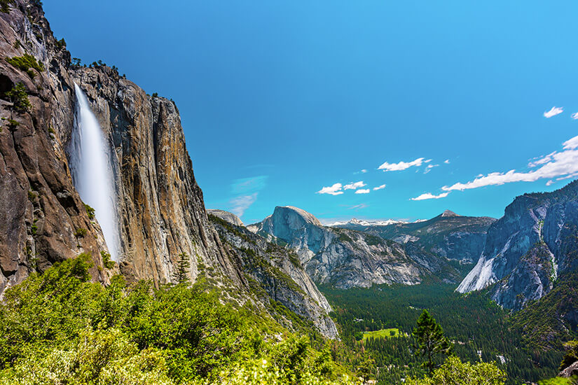 Zahlreiche Wasserfälle prägen das Bild des kalifornischen Schmuckstücks. Die Yosemite Falls zählen mit 739 Metern zu den größten Wasserfällen der Welt. Diese könnt ihr bei einer tiefer angesiedelten Wanderung zu den Lower Yosemite Falls anschauen. Wer höher hinaus will, kann auch zu den Upper Yosemite Falls emporklettern. Weitere Attraktionen bilden der Bridalveil Fall, der manchmal mit Regenbögen beglückt, die Ribbon Falls oder die Wapama Falls im Hetch Hetchy Valley. Auch die Horsetail Falls am El Capitan können farbenfroh ausfallen: Zu Jahresanfang wirkt es dank der goldenen Lichtverhältnisse so, als würde flüssiges Lava den Hang herabstürzen.