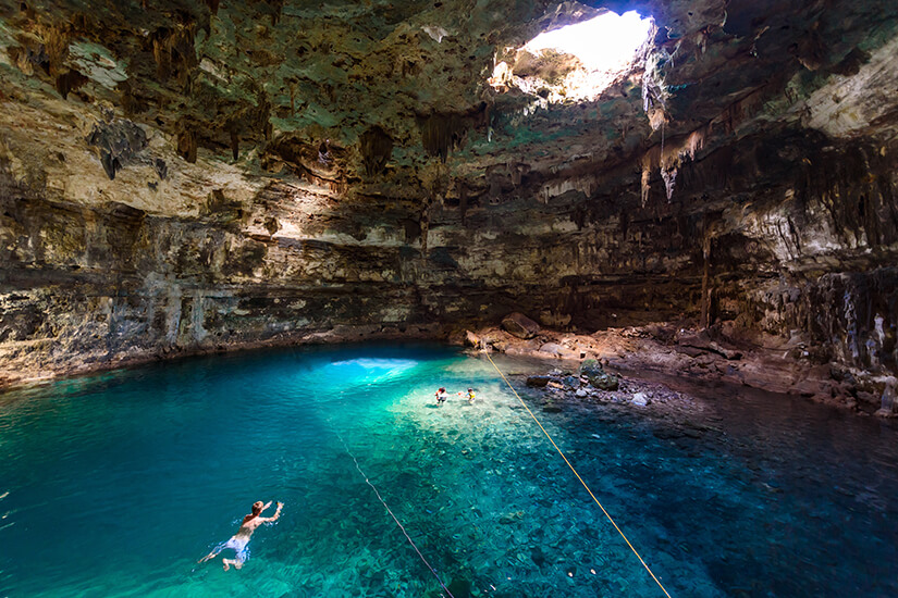 Die eindrucksvollen Höhlen wurden bereits bei den Maya als Sitz der Götter verehrt. Die Kultstätte eröffnet euch einen einmaligen Blick in die „Unterwelt“ von Yucatán mit ihren Stalagmiten sowie Stalagtiten, welche ihr jedoch nicht ohne einen ortskundigen Führer erkunden solltet.