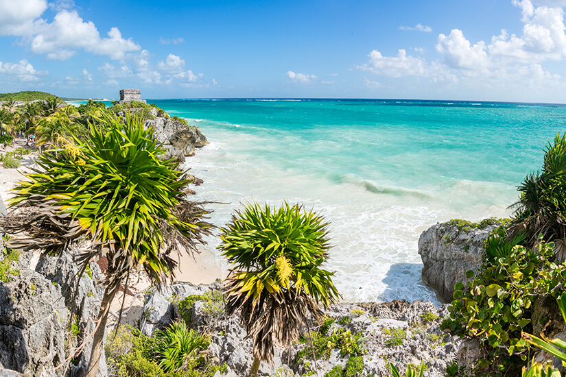 Ein ebenfalls bekannter und beliebter Ort auf Yucatán ist die Stadt Tulum, wo ihr die mitunter schönsten Karibikstrände an der Riviera Maya findet. Auch hier gibt es eine Zona Hotelera, die an die Hochhäuser in Cancún erinnert. Doch etwas weiter südlich findet ihr auch weniger urbane Gebiete mit dem Biosphärenreservat Sian Ka’an und der archäologischen Zone, wo ihr die Maya-Ruinen von Tulum besichtigen könnt, die spektakulär auf einer Klippe über dem Meer liegen und euch einen atemberaubenden Ausblick bieten. Downtown könnt ihr euch hier ebenso wie in Cancún ins Nachtleben stürzen oder tagsüber in Souvenirgeschäften bummeln. Auch viele Tauchbasen sowie Reisebüros findet ihr hier, um spannende Ausflüge oder eure Weiterreise zu organisieren.