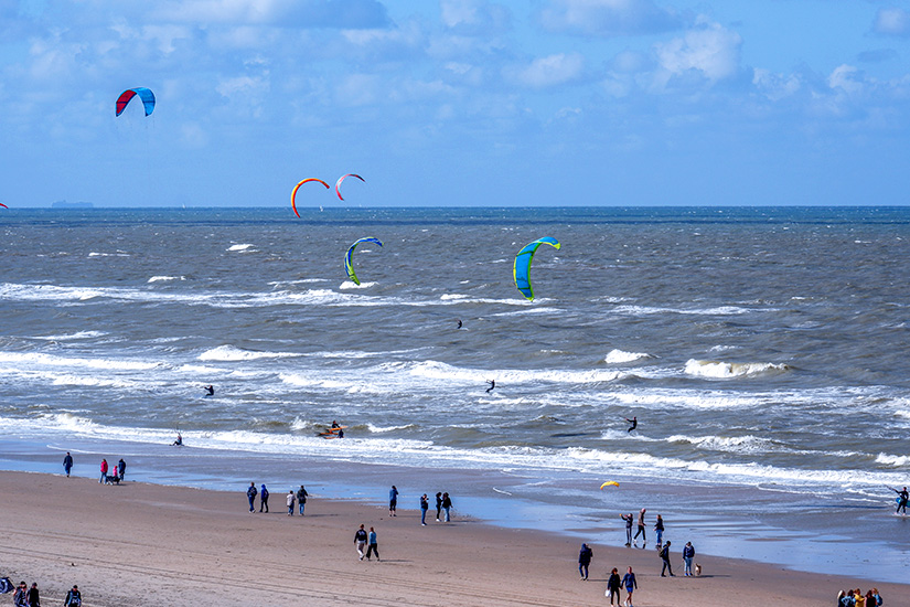 Die Nordsee kann an manchen Tagen durchaus etwas rauer werden. Dann verschwinden die Familien vom Strand und machen Platz für die Wassersportler, allen voran die Drachen- und Windsurfer. Wassersport in allen möglichen Ausführungen gehört zum Alltag an den Stränden von Zandvoort.