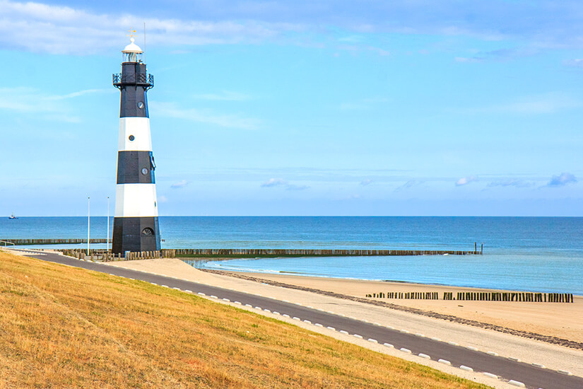 Dramatische Küste mit historischem Erbe: Hier verschmelzen dramatische Küstenlandschaft, technische Meisterleistungen und historisches Erbe zu einem einzigartigen Erlebnis. Ein absolutes Highlight ist der imposante Deich, der sich wie ein schützendes Band um den Ort legt! Anders als an den meisten Stränden Zeelands findet ihr hier keinen sanft ansteigenden Dünengürtel, sondern einen mächtigen Wall – ein beeindruckendes Zeugnis des Kampfes der Niederländer gegen das Meer.