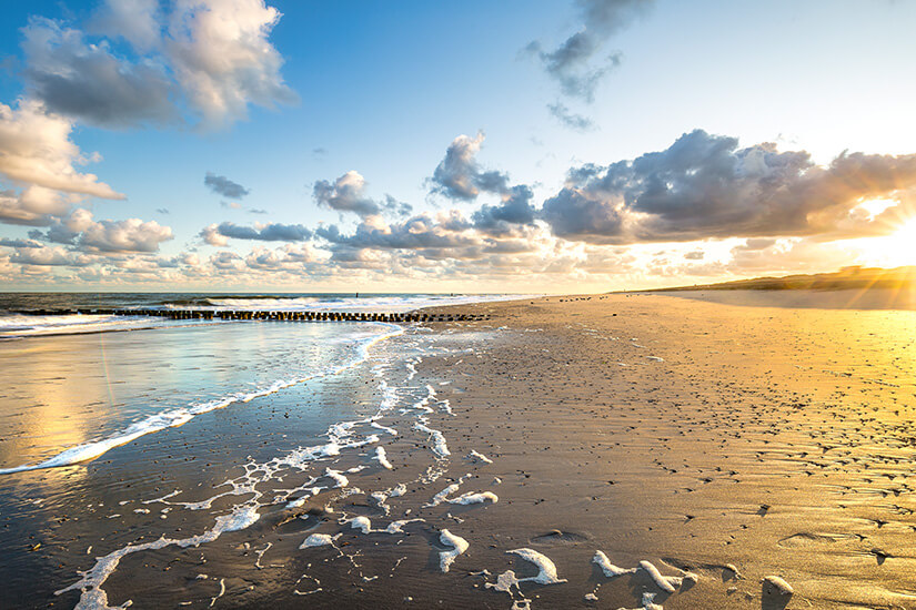 Zeelands Strände haben ihren ganz eigenen Charakter. Weite Horizonte treffen auf dramatische Wolkenformationen, die das Licht in ständig wechselnden Farbtönen reflektieren – ein Traum für Fotografen und Naturliebhaber! Die charakteristischen Holzpfähle, die wie Wächter im Wasser stehen, verleihen dem Panorama eine malerische Note, die typisch für diese Region ist. Hier verbindet sich niederländische Gemütlichkeit mit maritimem Flair. In den charmanten Strandpavillons könnt ihr bei einer heißen Muschelpfanne und einem kühlen Bier den Sonnenuntergang genießen.