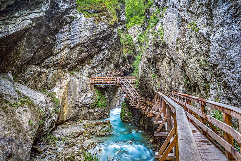 Logisch, dass Wanderungen in Zell am See zum guten Ton gehören. Immerhin ragen mehrere Dreitausender in unmittelbarer Nähe in die Wolken hinein. Doch es kann auch entspannt losgehen, wie zum Beispiel mit Touren auf der Schmittenhöhe oder einem Spaziergang am Klettersteig der Sigmund Thun Klamm. Diese erreicht ihr nach 15 Minuten Anfahrt und blickt bis zu 30 Meter in die Tiefe der Schlucht. Insgesamt ist das 320 Meter lange Naturdenkmal einfach über Holzbrücken und -treppen zu erkunden, ihr solltet euch aber ausreichend Zeit, festes Schuhwerk und eine Kamera mitnehmen.