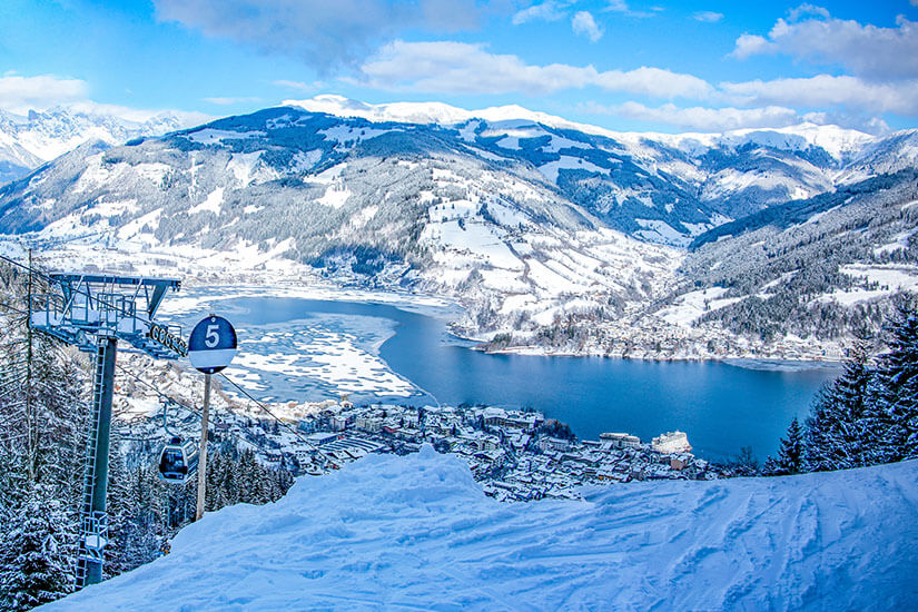À propos Wintersport: Dieser kommt in Zell am See während der kalten Jahreszeit definitiv nicht zu kurz. Das Kitzsteinhorn als berühmter Gletscher der Gegend hebt sich mit seinem Skywalk durch die Eiswelt besonders hervor. Skigebiete wie das 20 Minuten von der Stadt entfernte Saalbach-Hinterglemm verfügen indes über 270 Pistenkilometer, die sich zum Skifahren oder Snowboarden eignen. Wer erstmals auf die Bretter steigt, kann vor Ort einen Kurs belegen. Rodeln, Schneewanderungen und Schlittschuhfahren auf dem zugefrorenen Zeller See sind im Winter ebenfalls tolle To-dos für Aktivurlauber.