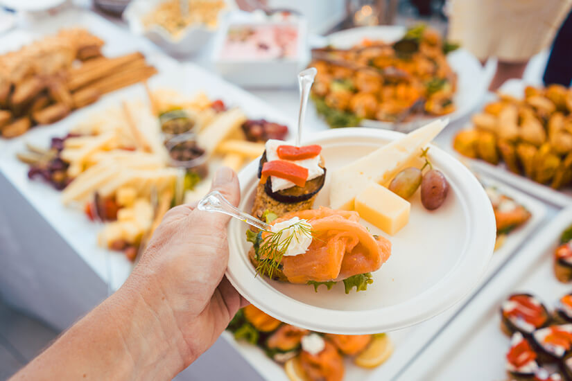 • Am Buffet solltet ihr nur so viel nehmen, wie ihr essen könnt, lieber einmal mehr gehen.