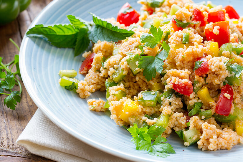 In der nordafrikanischen Küche kommt ihr kaum um Couscous herum. Dabei handelt es sich eigentlich um eine Getreideart. Meist bezeichnet der Begriff jedoch eine Soße aus Kartoffeln, Karotten, Tomaten und Zucchini, die manchmal mit Lammfleisch, Hühnerfleisch oder Kürbisstücken angereichert wird. Wichtig ist der Grieß dazu. In der tunesischen Küche kommt außerdem Tomatensoße hinzu.