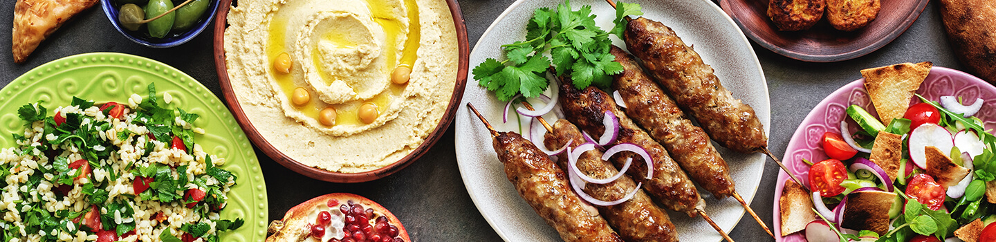 In den arabischen Ländern gibt es einerseits viele Unterschiede, aber auch ein gemeinsames Bindeglied: Den Islam als Religion. Daher ist nicht verwunderlich, dass Schweinefleisch keine Rolle in der arabischen Küche spielt. Dieses Prinzip kennt ihr bereits aus der türkischen Küche. Auch Fischgerichte sind – außerhalb der Küstenregionen – selten. Dieser Fakt beruht darauf, dass Fisch aufgrund der überwiegend kargen, heißen Wüstenlandschaft zu schnell verderben würde. Häufig werdet ihr beim arabischen Essen allerdings auf Kichererbsen, Linsen, Bohnen sowie Gewürze wie Zimt, Kurkuma und Safran treffen. Da es sich dabei um Grundzutaten handelt, die in vielen Gerichten auch allein vorkommen, sollten Vegetarier und Veganer unter den arabischen Spezialitäten etwas Leckeres finden. Im typischen Reiseland und weiteren nordafrikanischen Ländern sind dagegen Tauben und Hühner als Fleischlieferant nicht unüblich.