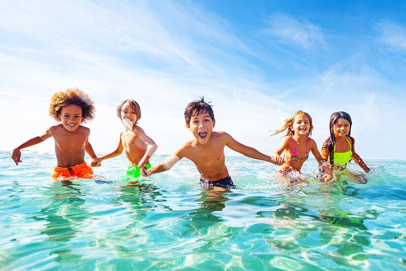 - Kind mit Wasser vertraut machen: Vor dem Urlaub solltet ihr euren Sprössling auf die möglichen Gefahren des Wassers hinweisen. Je nach Alter des Kindes könnt ihr außerdem dafür sorgen, dass es erste Wasserkontakte erhält. Babyschwimmen oder Schwimmkurse, die bereits ab vier Jahren möglich sind, gelten als gute Idee, um das Kind mit dem Wasser vertraut zu machen.
