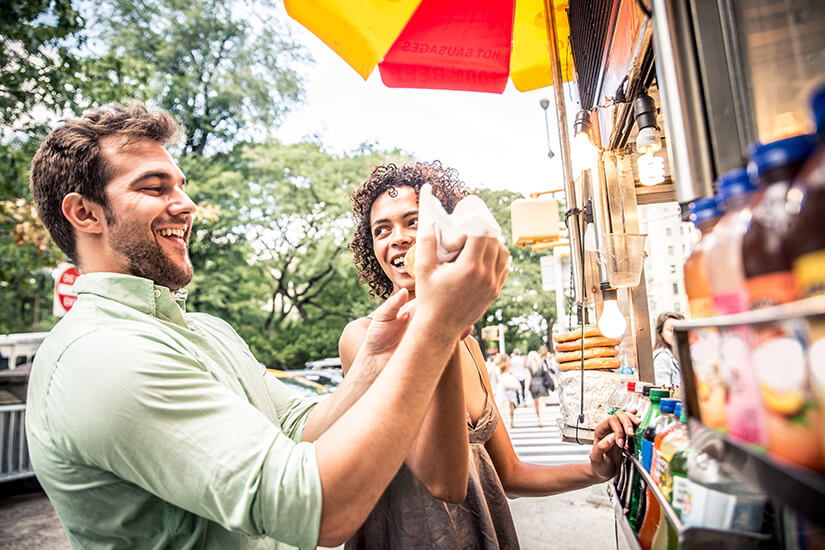 Die Selbstverpflegung spart enorme Kosten, gerade in Ländern mit teuren Restaurantpreisen. Versorgt euch auf Märkten oder in Geschäften mit Zutaten und schwingt den Kochlöffel, wenn ihr eine Kochmöglichkeit habt. Fehlt diese, könnt ihr euch immerhin von günstigem Street Food ernähren. Abseits der touristisch beliebten Gegenden lassen sich auch kleine, versteckte Pubs und Cafés mit Schnäppchen finden. Fragt doch einmal die Einheimischen nach einem Geheimtipp!
