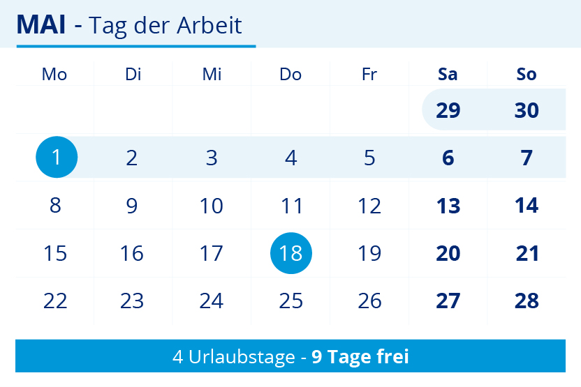 | Tag der Arbeit | 01.05.2026 | 4 | 27. – 30.04. |