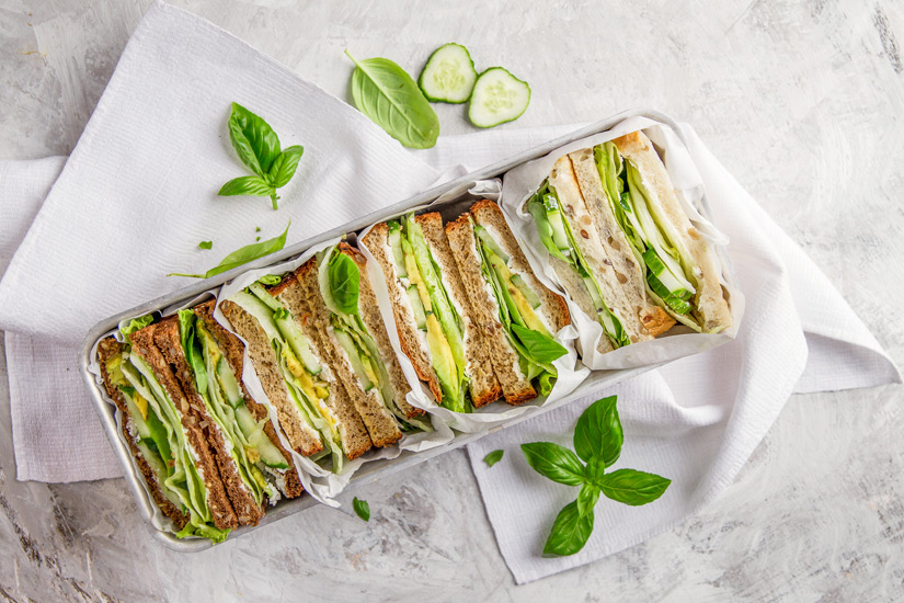 Ob als Vorspeise oder delikater Snack zum Nachmittagstee – Sandwiches haben einen festen Platz auf dem englischen Speiseplan. Klassiker wie das Gurken-Sandwich mit Dill und Creme fraîche sind ein idealer Appetithappen für Vegetarier. Ebenfalls populär sind gebutterte Toastbrotscheiben mit Lachs, Schinken, englischem Stilton-Käse oder Cheddar. Ganz wichtig: Die Weißbrotscheiben kommen ungetoastet und gaumenfreundlich von Krusten befreit auf den Teller. Wenn ihr es vielleicht knuspriger mögt, ist ein Toast mit Garnelen oder ein Chicken Club Sandwich eine köstliche Alternative.